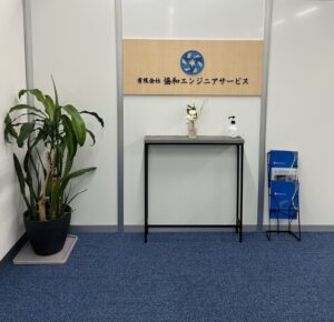 エントランスは協和のイメージカラーの「ブルー」を活かし、